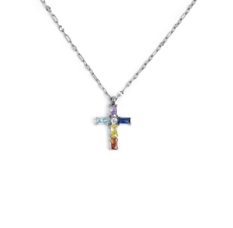 ° Collana croce con zirconi colorati