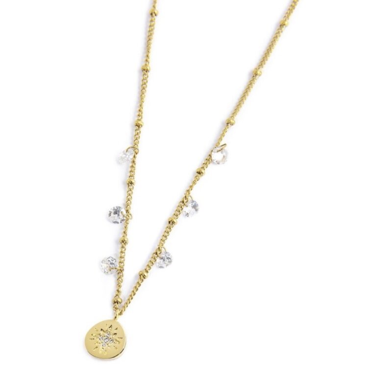 ° Collana medaglietta rosa dei venti e zirconi pendenti