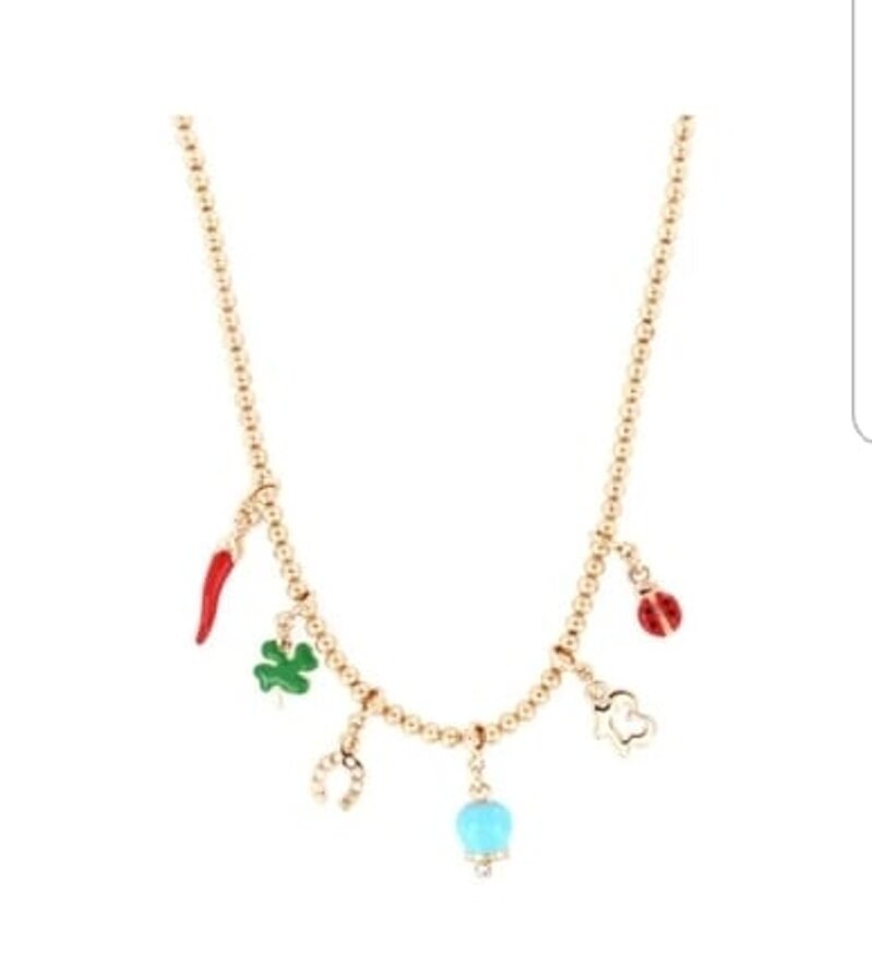 collana pallini e charms portafortuna - rosata